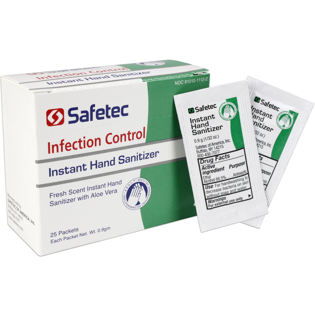 Safetec Instant Hand Sanitizer (Fresh Scent) kills 99.9% of widespread germs and evaporates completely to leave hands not feeling sticky. It contains aloe vera for added moisture with each use, increases skin hydration and preserves skin’s health. Convenient Hand sanitizer packets.