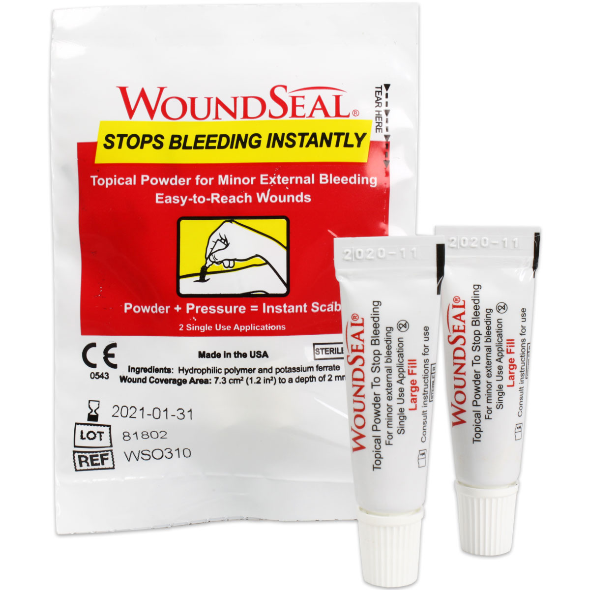• Pour Wound Seal Powder on bleeding wounds and apply pressure for 30 seconds